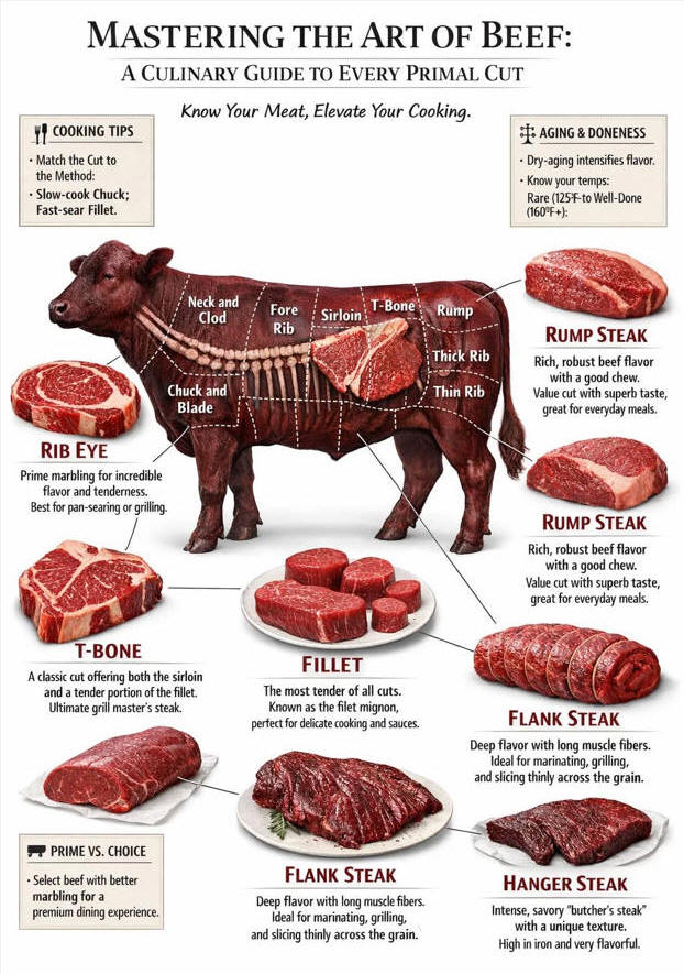 Beef Cuts - Shepard's Pie - Pincanha Steak - Prime Rib - Roast Beef and Gravy - Brisket - Classic Italian Pot Roast