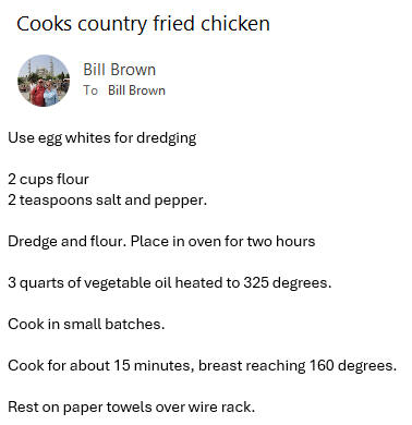 Noah's Ark Clam Chowder - Cook's Fried Chicken - Beef Roast - Marinated Pork Roast - Honey Garlic Glazed Port Tenderloin