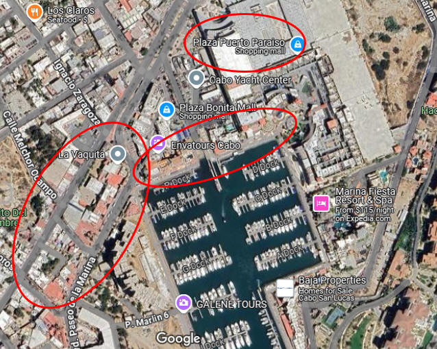 Cabo marina is a short 10 minute walk from the tender drop-off point. Lots of restaurants and shopping.