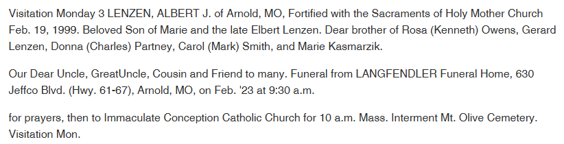 Albert Lenzen (April 9, 1948 - Feb. 19, 1999)