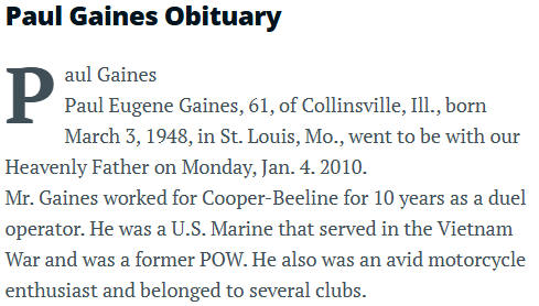 Paul Gaines (March 3, 1948 - Jan. 4, 2010) - Cremated - Unknown