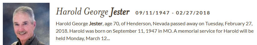 Harold Jester (September 11, 1947 – February 27, 2018) - Palm Eastern Mortuary & Cemetery - Las Vegas
