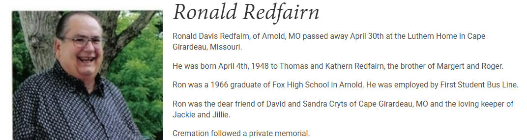 Ronald Redfairn (April 4, 1948 - April 30, 2010)